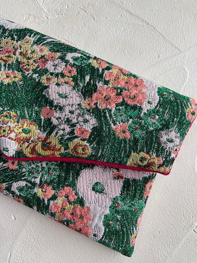 クラッチポーチ、油絵風お花ジャガードゴブラン織り、お花柄