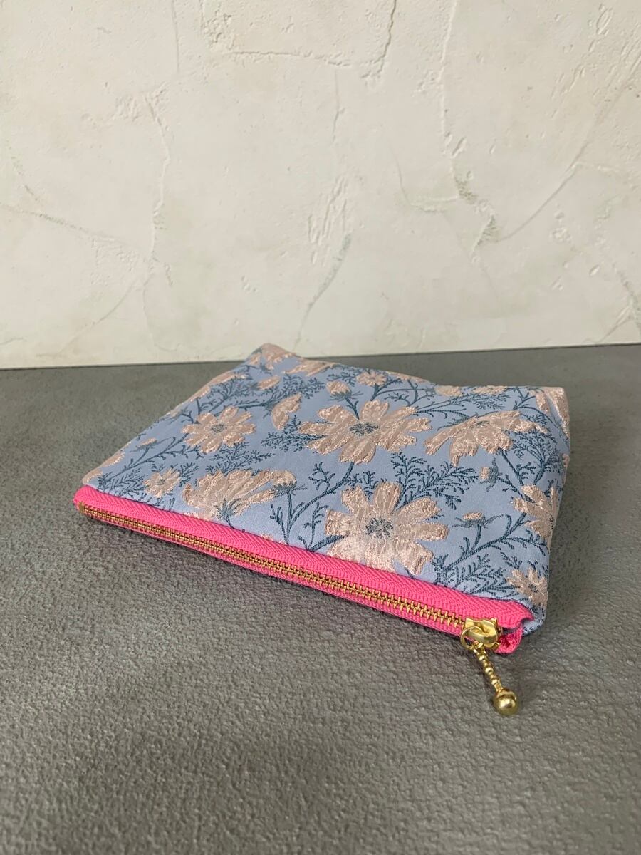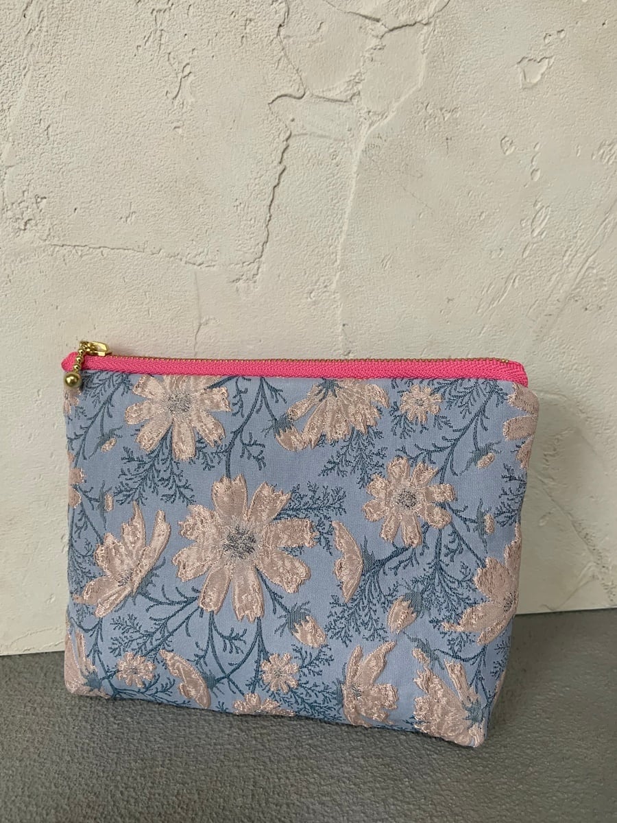 16センチファスナーポーチ、ジャガード☆マーガレットお花ブルー