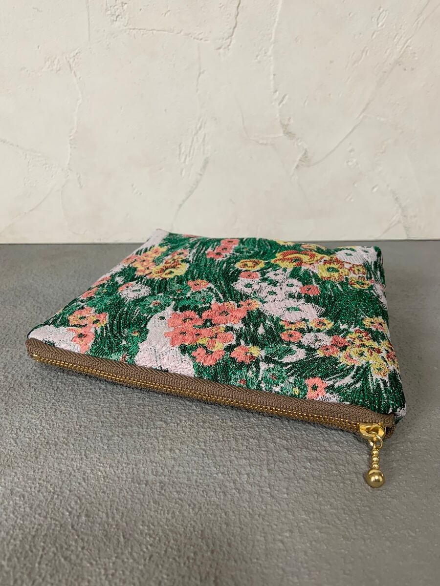 16センチファスナーポーチ、油絵風お花ジャガードゴブラン織り☆お花
