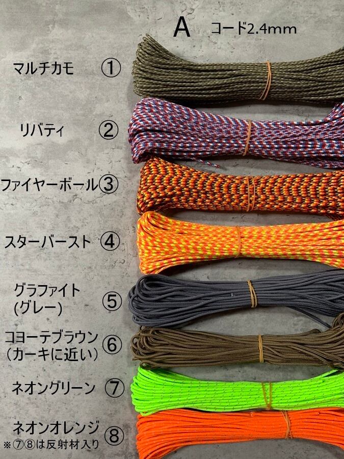 コードはアウトドアで使われるUSAアトウッドタクティカルコード。2.4mm