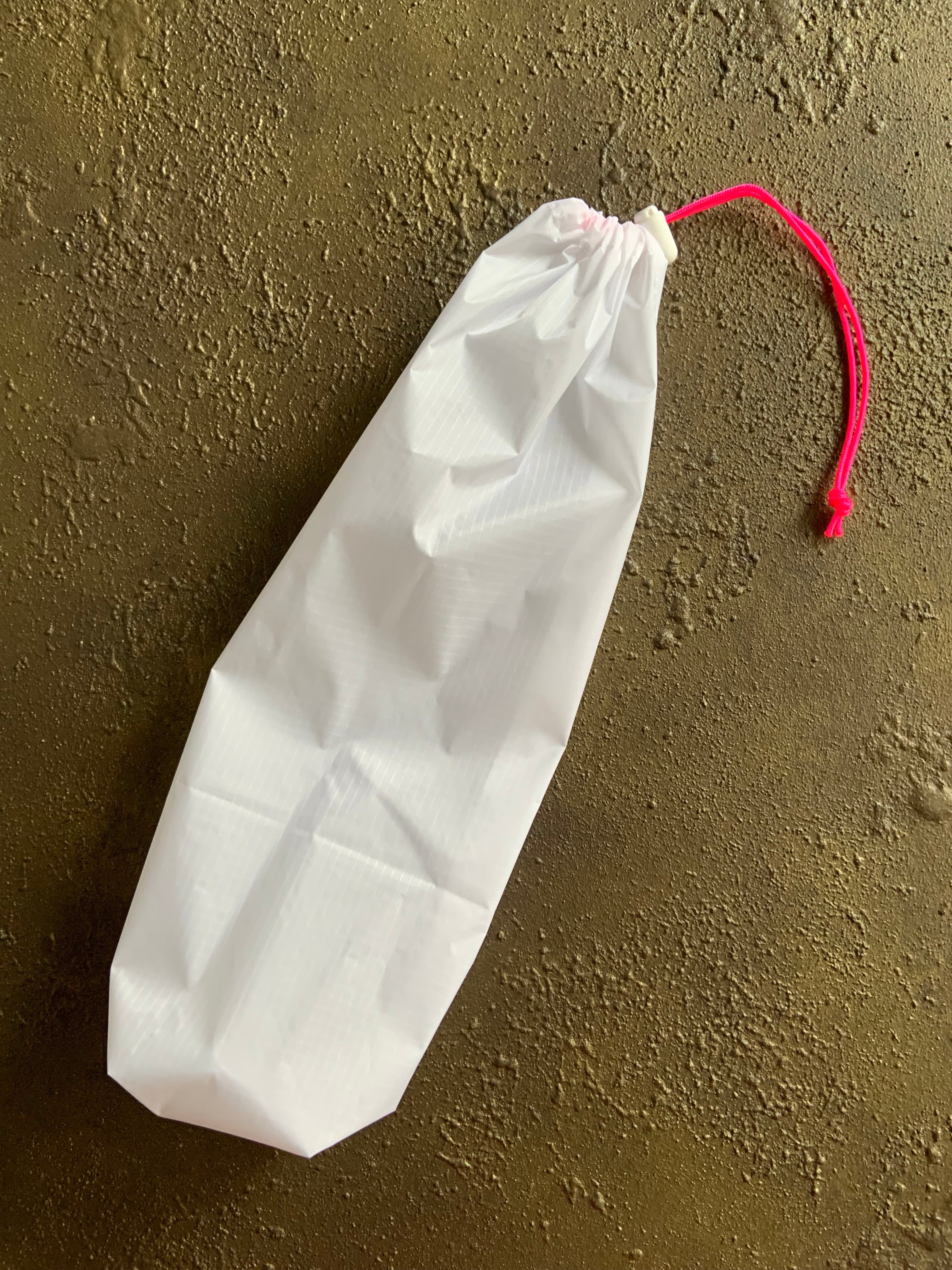 リップストップ生地ホワイトでトレッキングポールやテントポール等を収納できるスタッフサックを作りました。