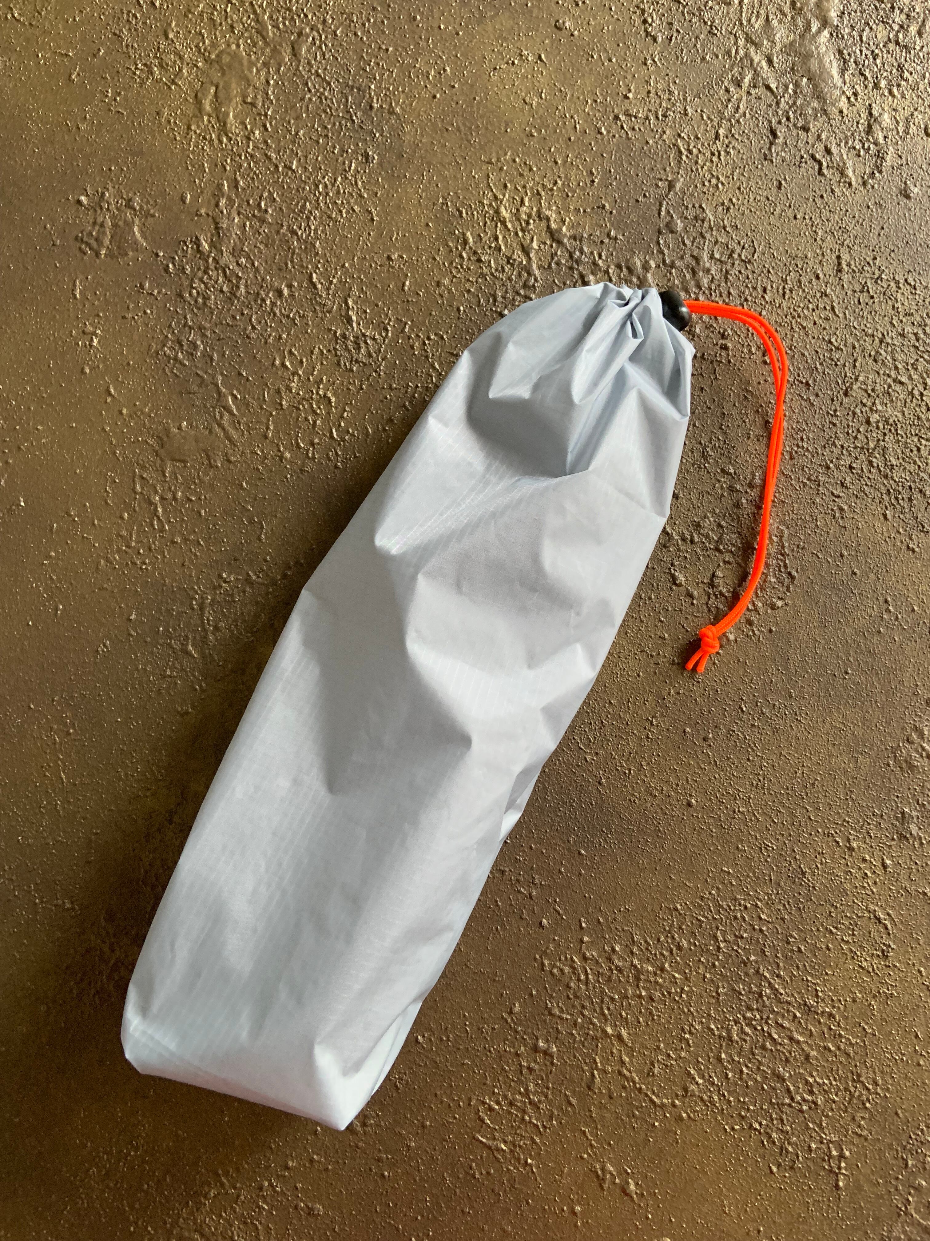 リップストップ生地グレーでトレッキングポールやテントポール等を収納できるスタッフサックを作りました。
