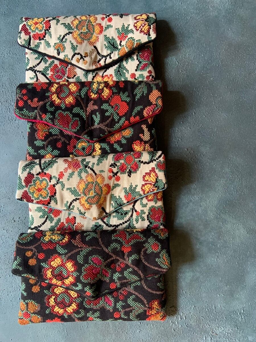 blackの花柄のゴブラン織り生地でクラッチポーチを作りました。