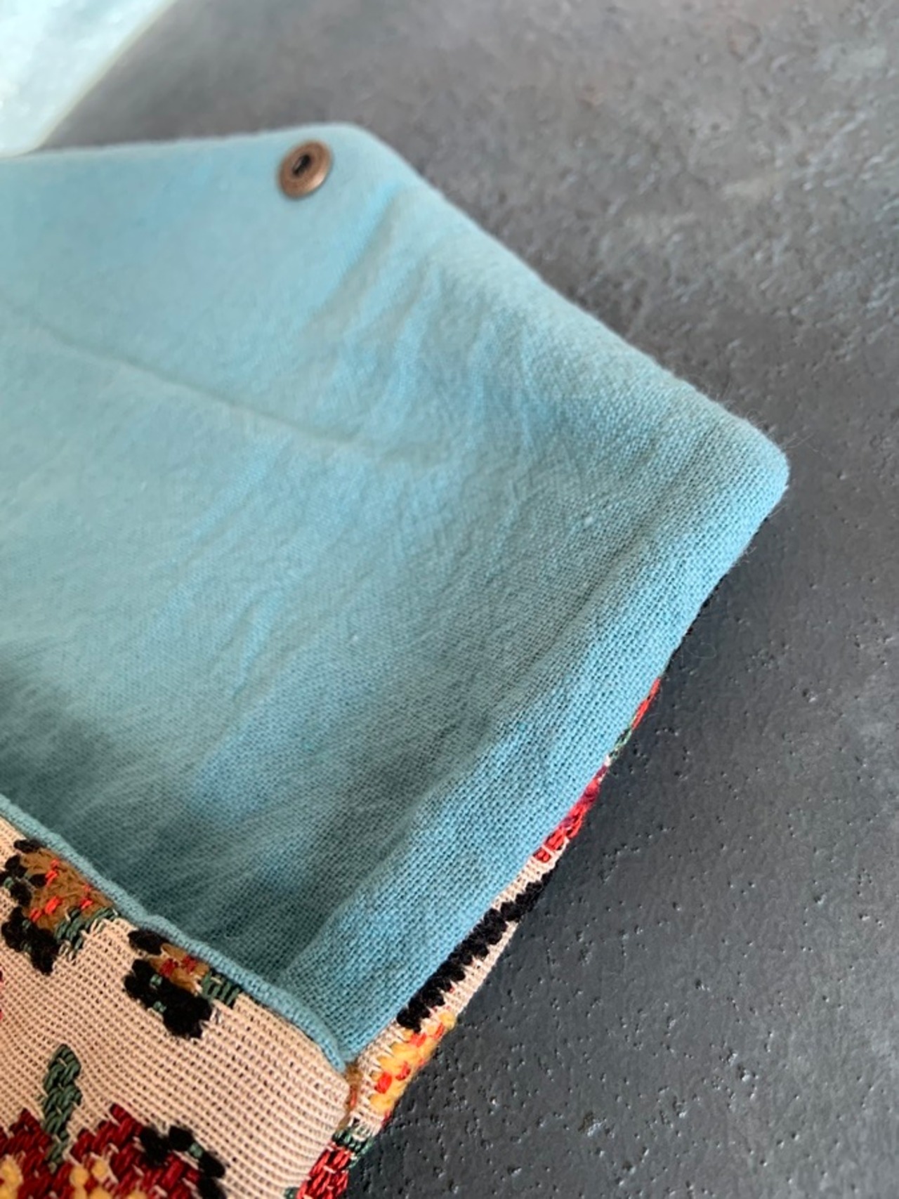 ゴブラン織り☆クラッチポーチ☆アイボリー&トルコブルー