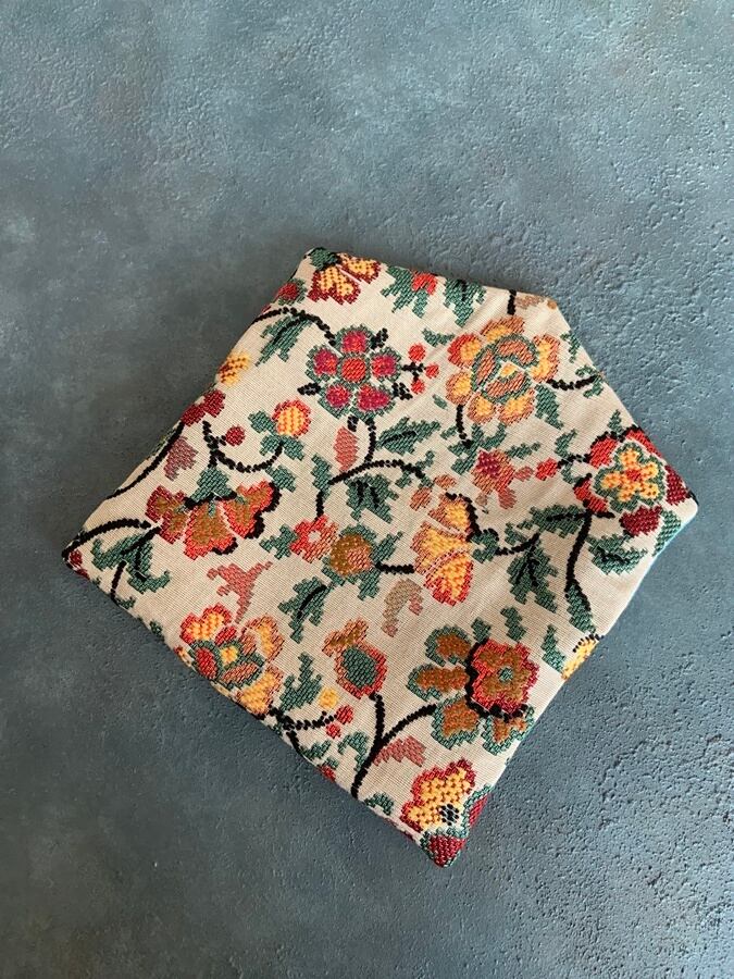アイボリーの花柄のゴブラン織り生地でクラッチポーチを作りました。